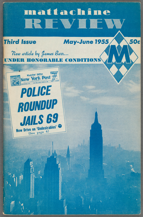 "Mattachine Review, Third issue, [Cover]" The New York Public Library Digital Collections.1955